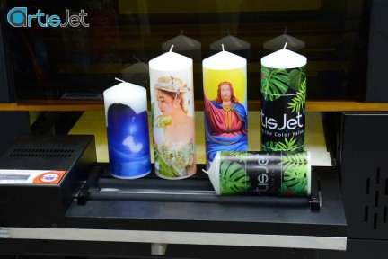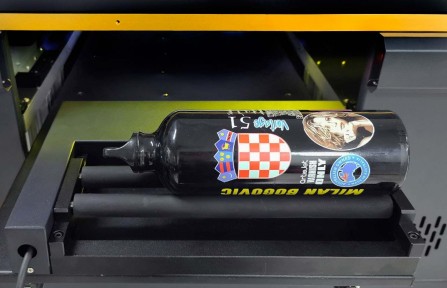 Veľkou výhodou je voliteľná možnosť rozšíriť tlačiareň o rotačné zariadenie pre potlač valcovitých predmetov ako poháre, fľaše, sviečky a rôzne iné.