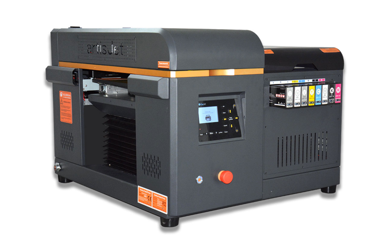 UV tlačiareň Artisjet 3000U PRO je vynovená verzia UV tlačiarne 3000U, má plne automatické nastavovanie výšky vďaka bočným senzorom, až do výšky 17cm.