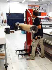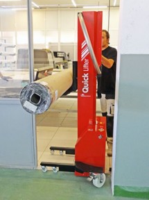 Zařízení Quick Lifter usnadňuje manipulaci s těžkými rolemi a je konstruováno tak, aby bylo schopno manipulovat s max. šířkou role 3.2m a nosností 150kg. Maximální výška zdvihu je 1.2m.